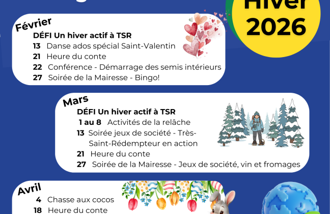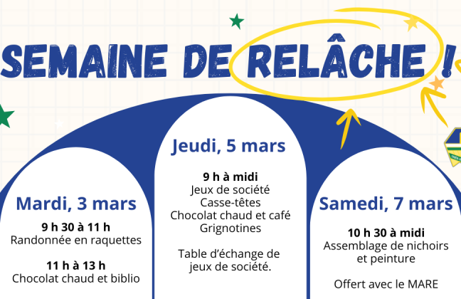 La Municipalité invite les familles à profiter d’activités gratuites et conviviales à l’occasion de la semaine de relâche. …